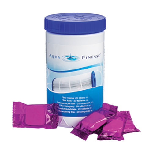O AquaFinesse – comprimidos de limpeza, limpam o filtro em apenas uma hora. Cada caixa contém 20 comprimidos embalados individualmente.