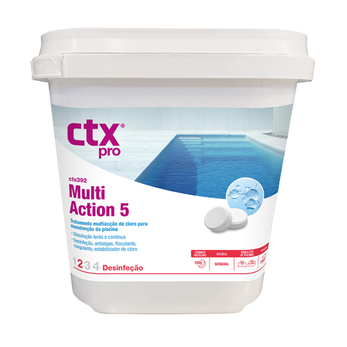 Tratamento de ação múltipla de cloro para a manutenção da piscina